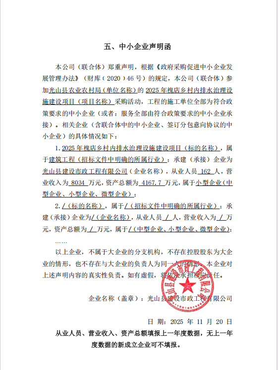 光山县农业农村局2025年槐店乡村内排水治理设施建设项目-成交公告